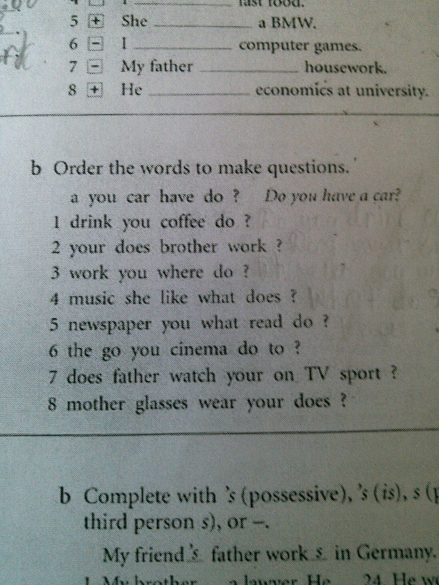 7. Does your father watch sport on TV?