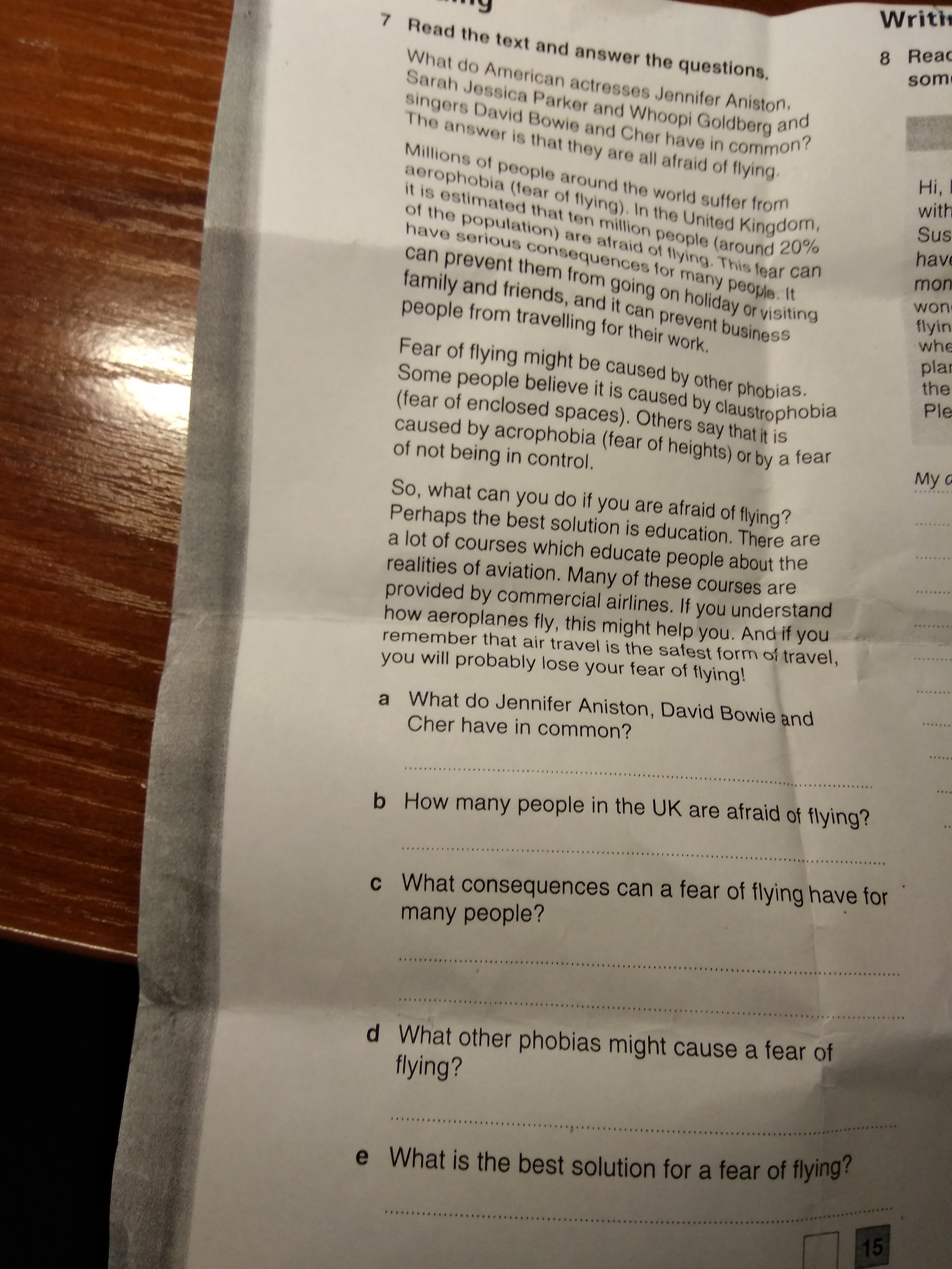 e. The best solution for a fear of flying is education.