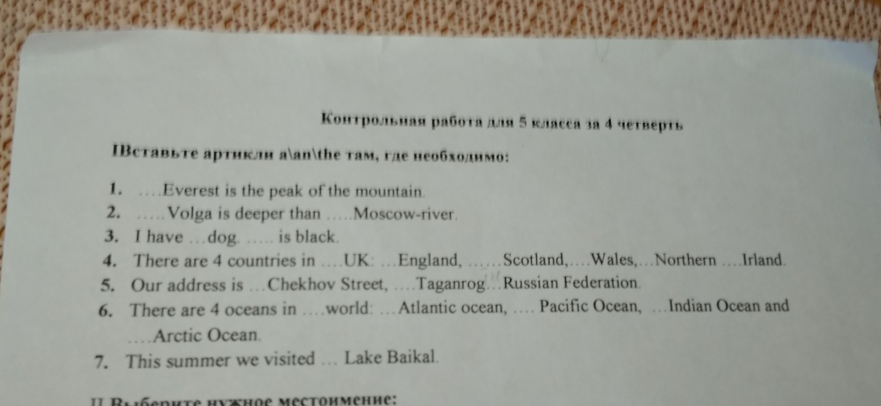 1 – 2 the, the 3 a dog, the dog is black 4 the UK, --,--,--,--,--, 5 --, -- , the