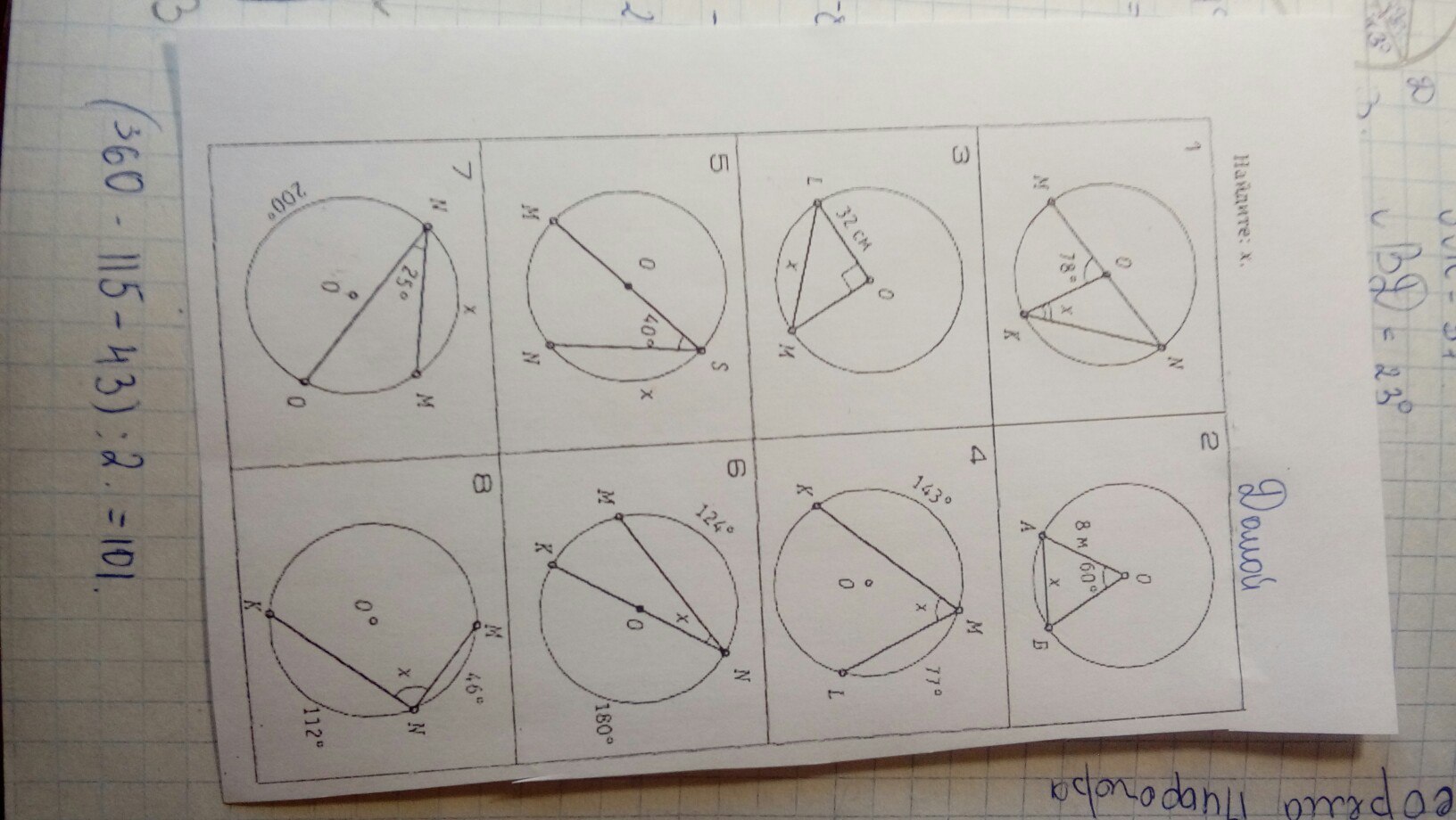 (вроде так, там же вписанные углы, а они меньше центральных. Надо посчитать все дуги и отнять их от 360. Это получится центральный угол)
