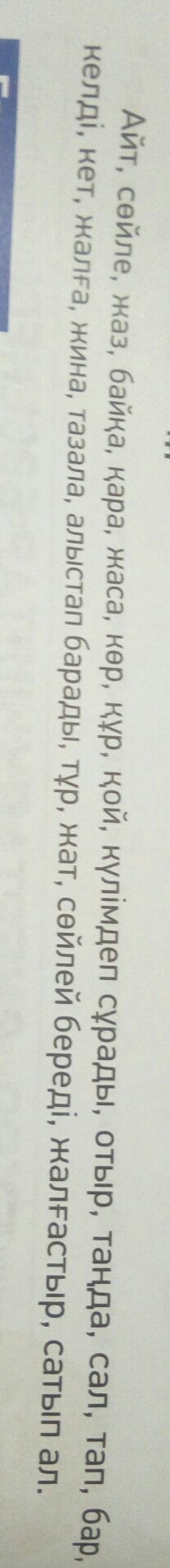 Бұйрық райлы етстіктерді таңдап, оларды шартты рай тулғасында бер. Айт. Бес етістікпен сойлем құра.