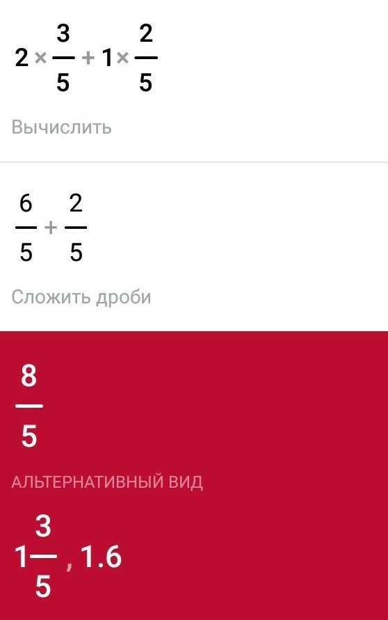 г) 2 3/5 + 1 2/5 = (2+1) + (3/5 + 2/5) = 3 5/5 = 4