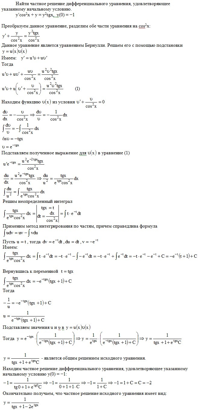 Найти честное решение дифференциального уравнения,удовлетворяющее указанному начальному условию.