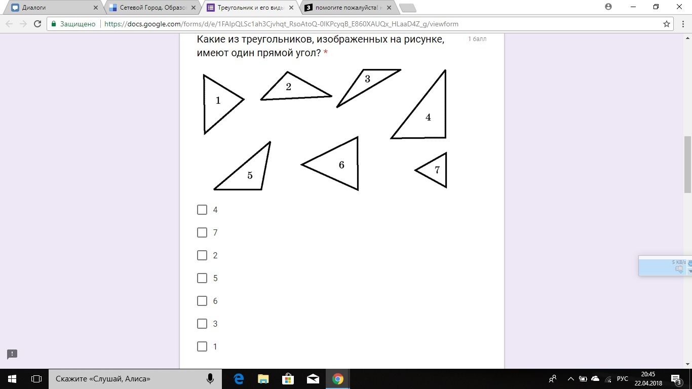 Могу назвать всего лишь 2 прямоугольных треугольника это 2,4