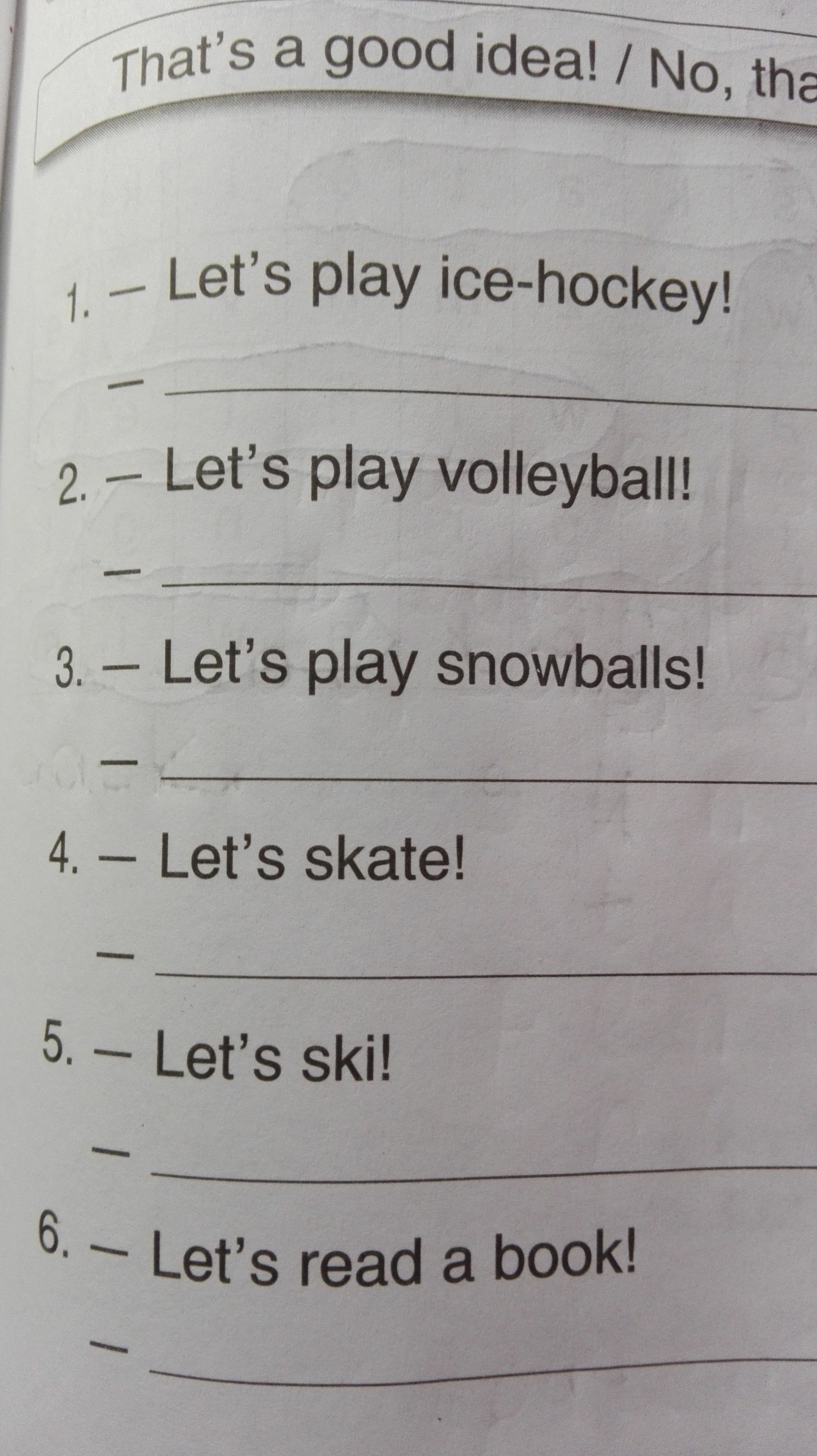 Это хорошая идея! / Нет, спасибо. / Извини, я не могу (не умею).