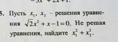 По теореме Виета х1+х2=-1/√2, х1*х2=-1/√2
