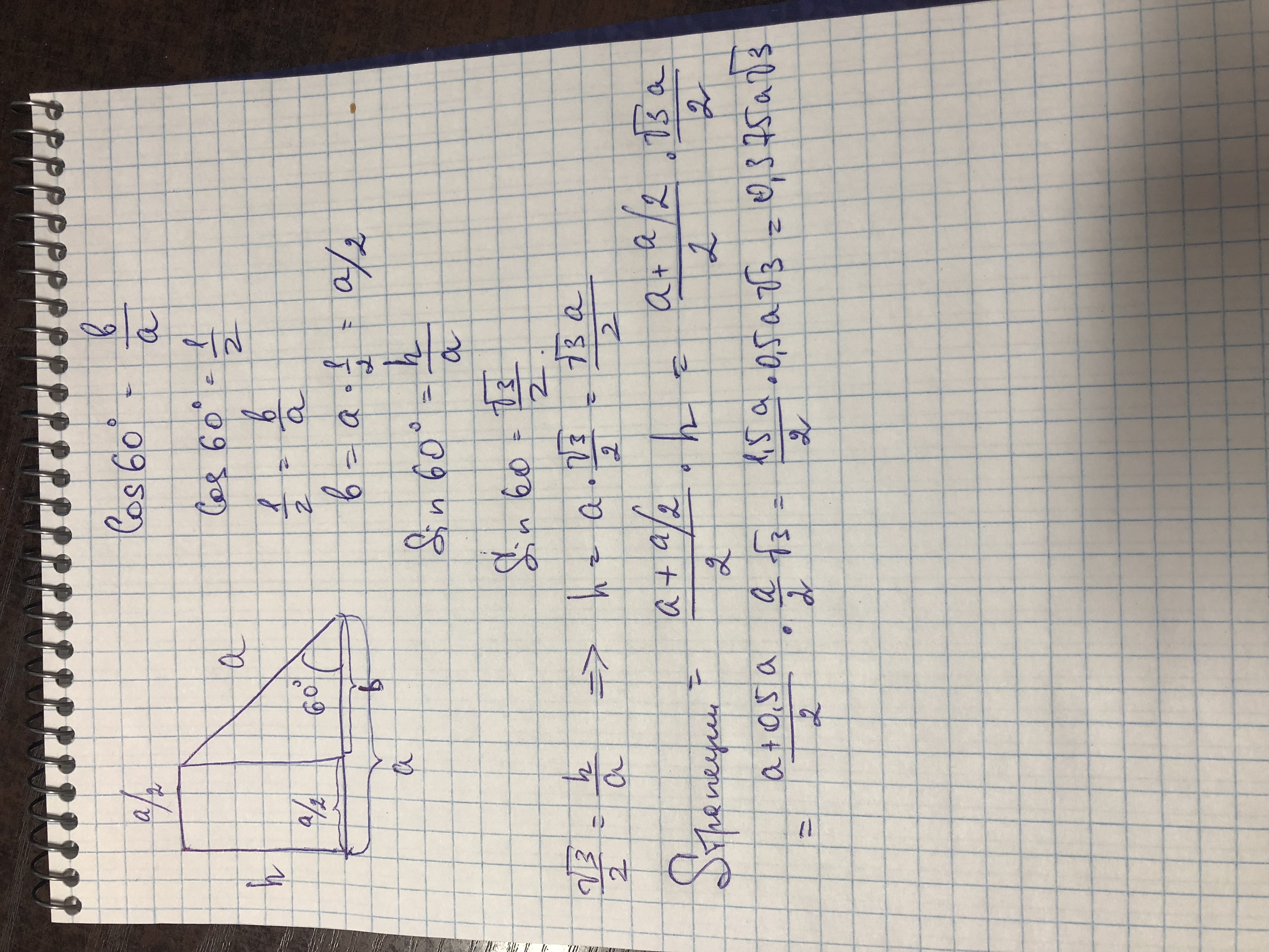 2)большее основание и большая боковая сторона прямоугольной трапеции равна а см, а один из углов 60°. найдите площадь трапеции