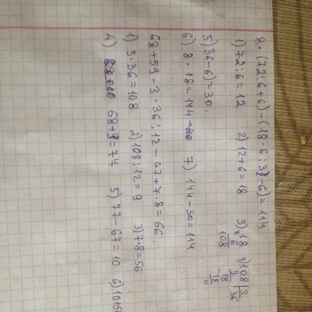 Я извиняюсь 4) 68+58=127 5) 126-9=118 6)118-67=51 7) 51+56=107 вот теперь правильно