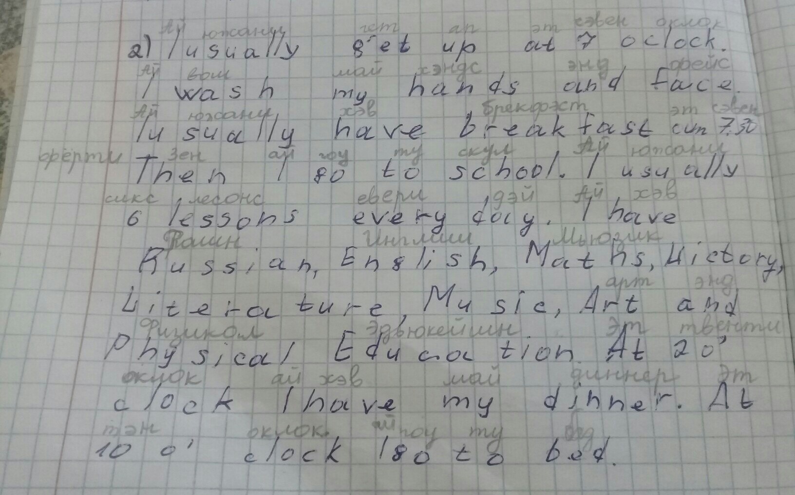 Я обычно сижу 6 уроков каждый день.