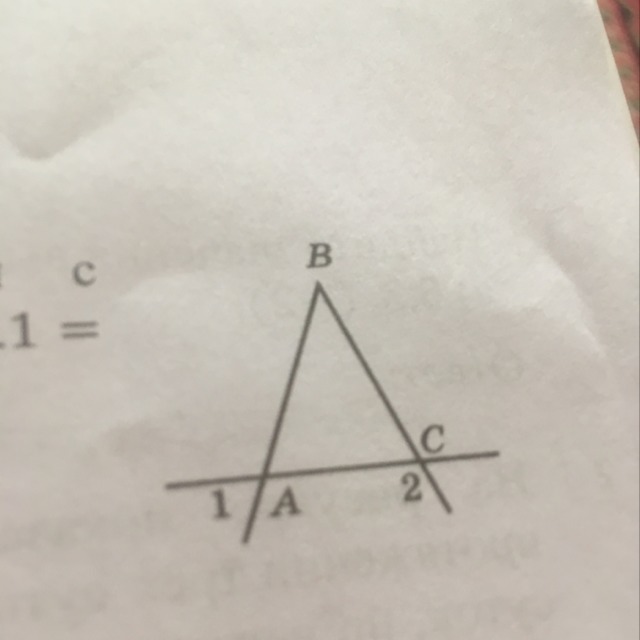 Треугольник ABC равнобедренный с основанием AC. Определите угол 2, если угол 1 =64 градуса