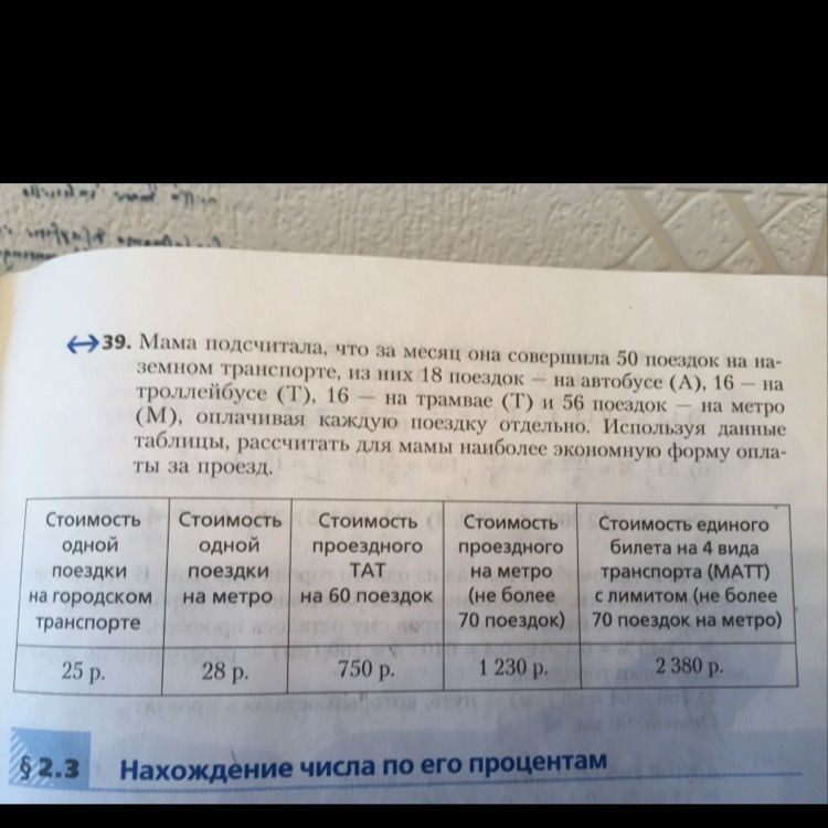 как видим это меньше, чем общий проездной на все виды (2380р), следовательно маме выгоднее купить 2 проездных по отдельности