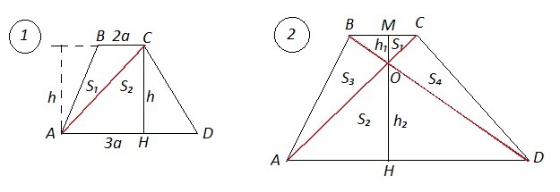 а) двух треугольников, на которые данная трапеция делится диагональю