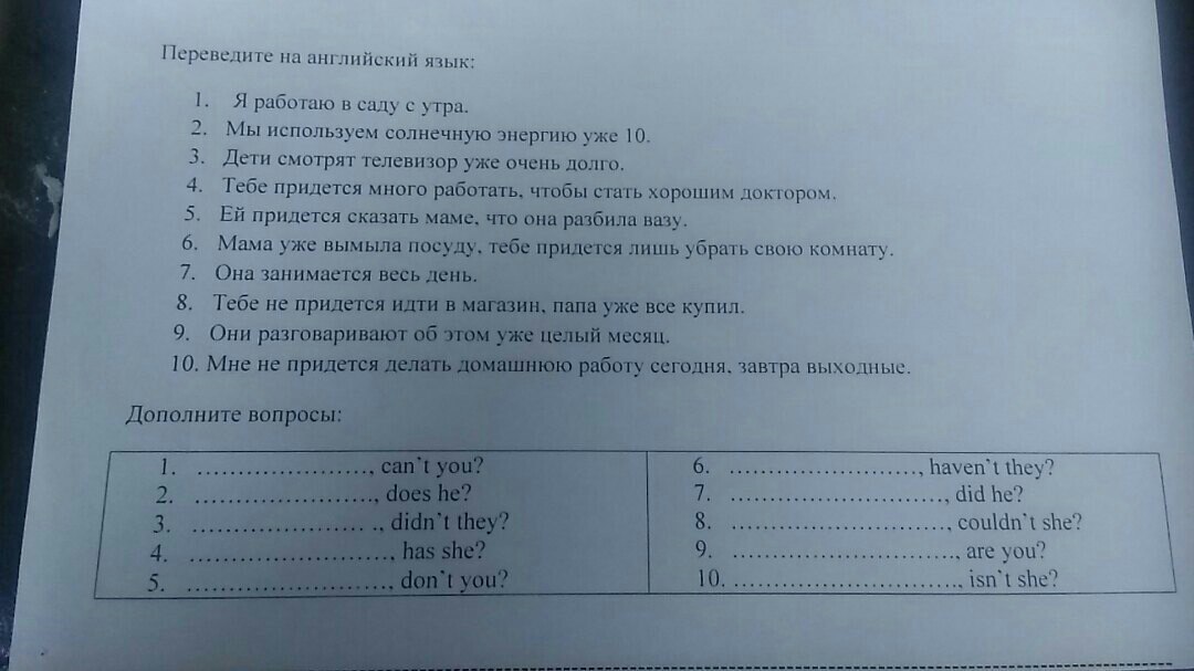 4) She hasn't done the homework yet, has she?