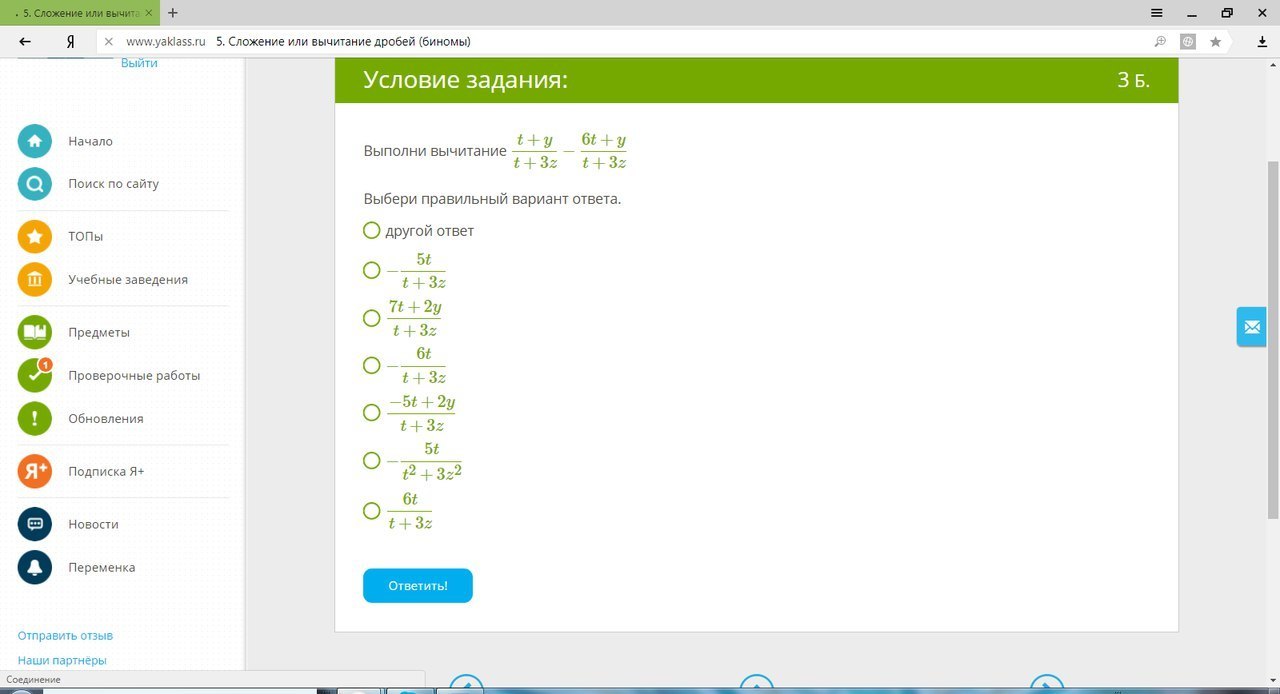 Выполни вычитание t+yt+3z−6t+yt+3z