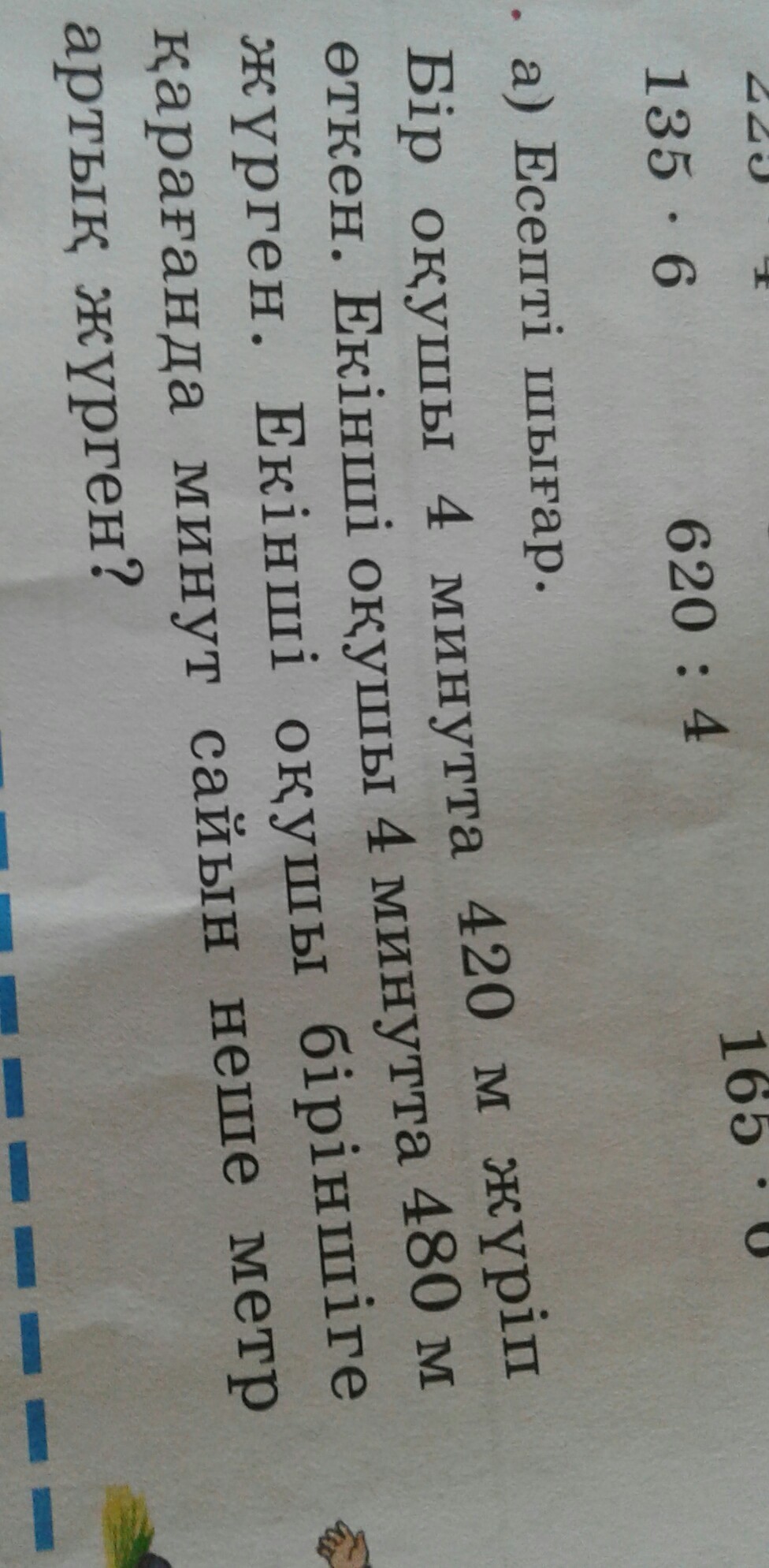 Бір оқушы 4минутта 420 м жүріп өткен Екінші оқушы 4 минутта 480 м жүрген.Екінші оқушы бірінші ге қарағанда минут сайын неше метр артық жүргенін.Өтініш көмектесиншии