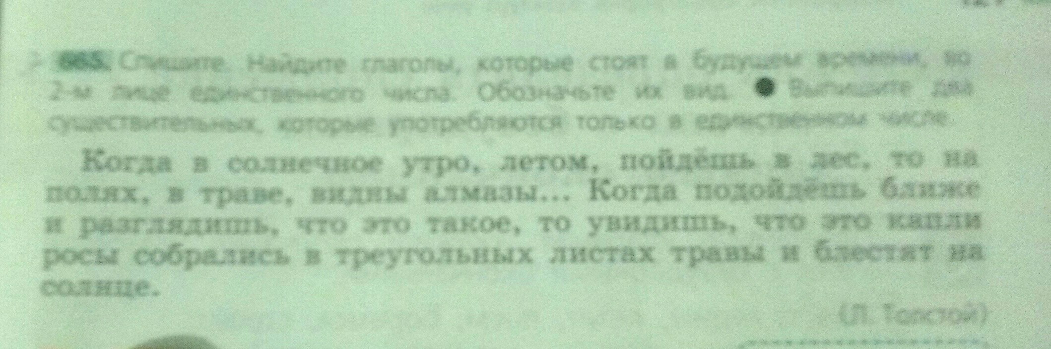 решите пж :) дам 10 баллов спешите найдите глаголы стоят в будущем времени, во 2м лице единственного числа. Обозначьте их вид выпишите 2 существительных, которые употребляются только в единственном числе.