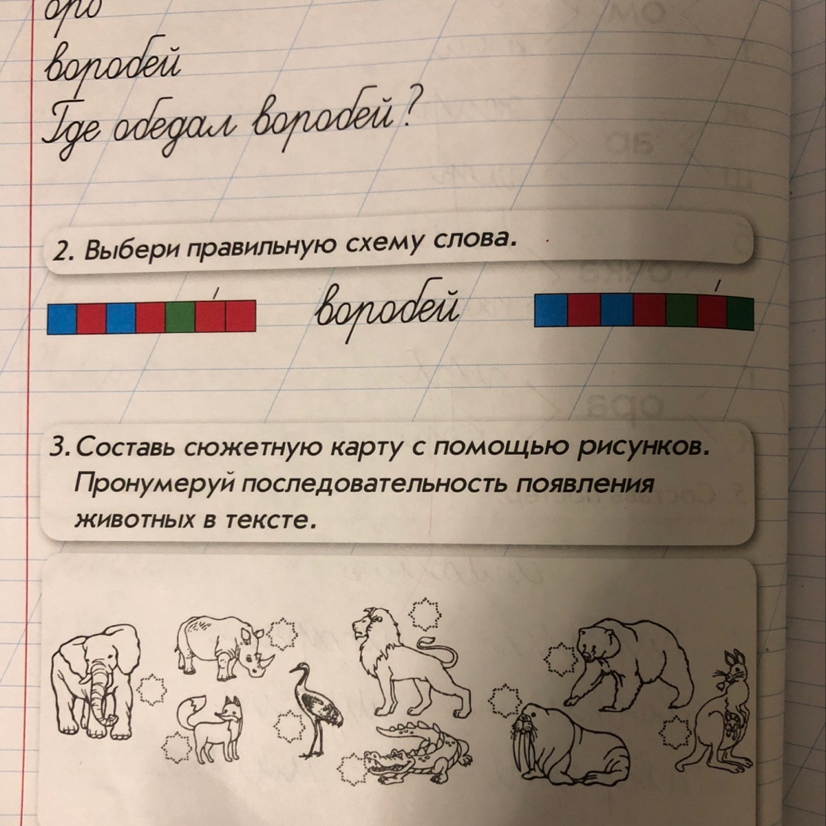 Первая правильная, синие это согласные, красные гласные, зелёная смягчающая буква