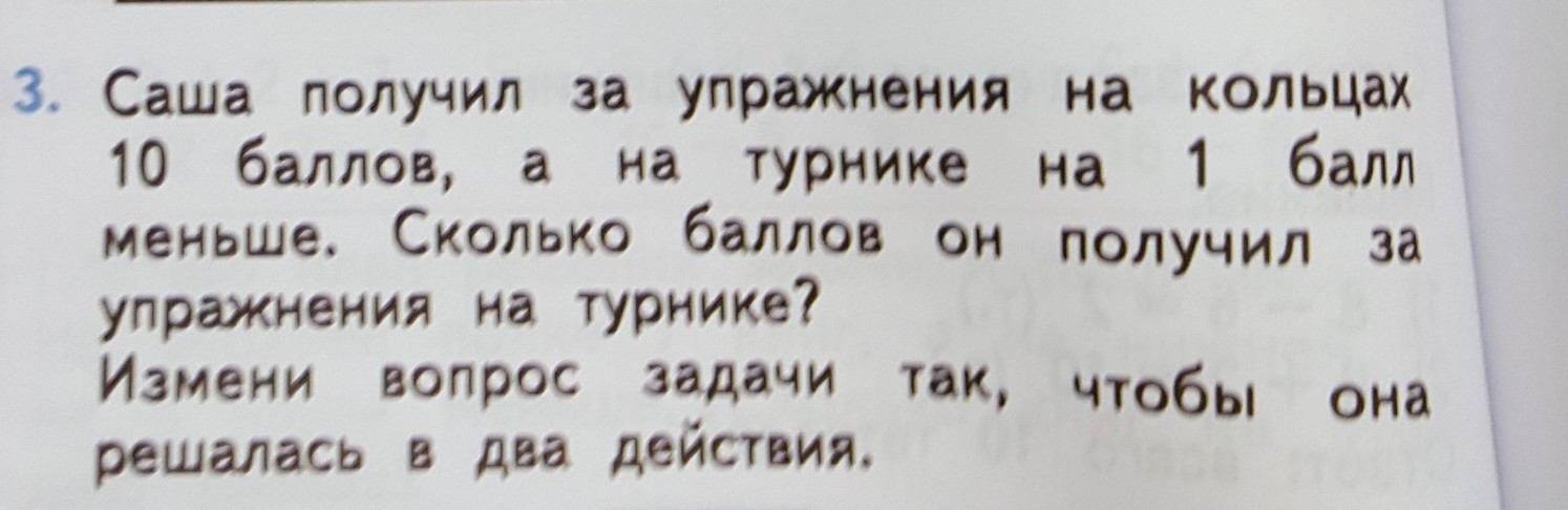 Второе действие: нужно вычислить, сколько всего баллов Саша получит за первое и второе упражнение (9+10=19)