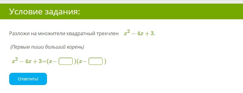 Знаем, что при разложении квадратного трехчлена на множители можно использовать данную формулу: