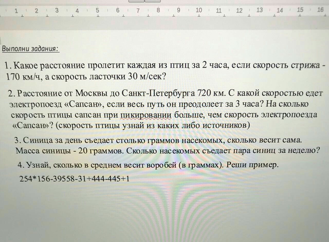 1.) 170 • 2 = 340 ( км.) пролетит стриж за 2 часа