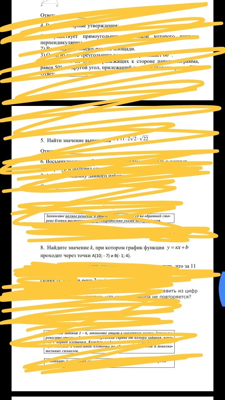 помогите с решением 8,Найдите значение k, при котором график функции y=kx+b проходит через точки А(10,-7) и B(-1,4)