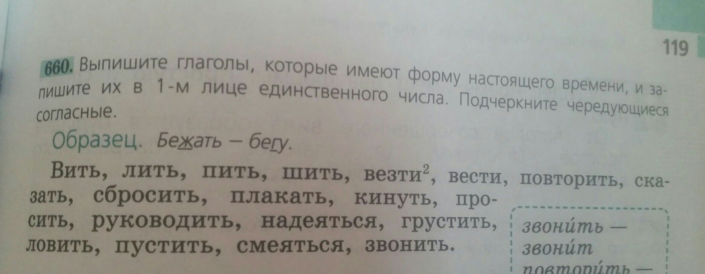 выпишите глаголы, которые имеют форму настоящего времени, и запишите их в первом лице единственного числа. подчеркните чередующиеся согласные