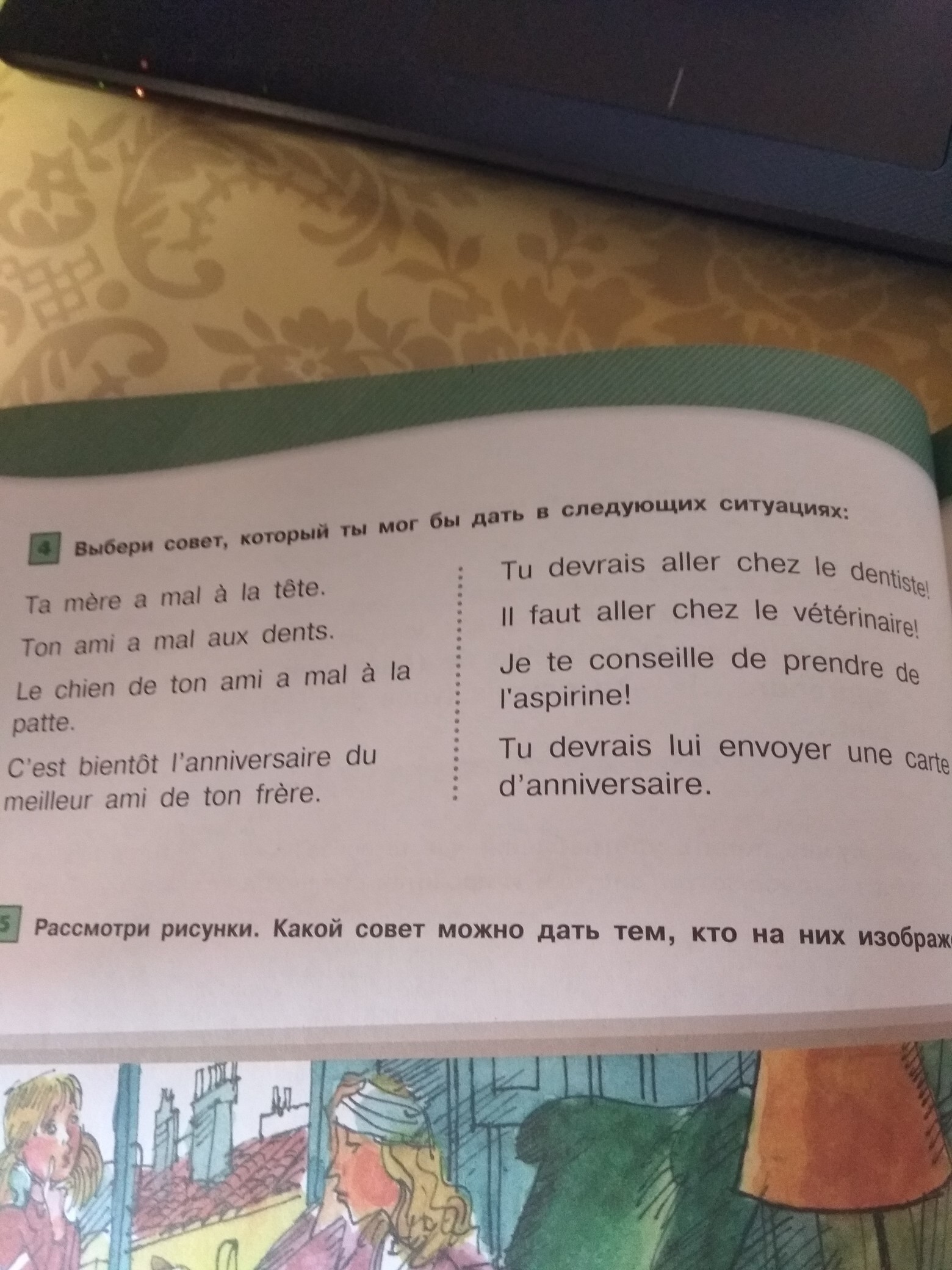 Ta mère a mal à la tête. J e te conseille de prendre de l'aspirine.