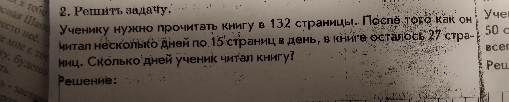 2). 105:15=7(дней) ученик читал по 15 страниц.