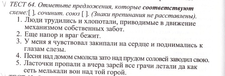 Отметьте предложения, которые соответствуют схеме: [ ], сочинит. союз [ ].