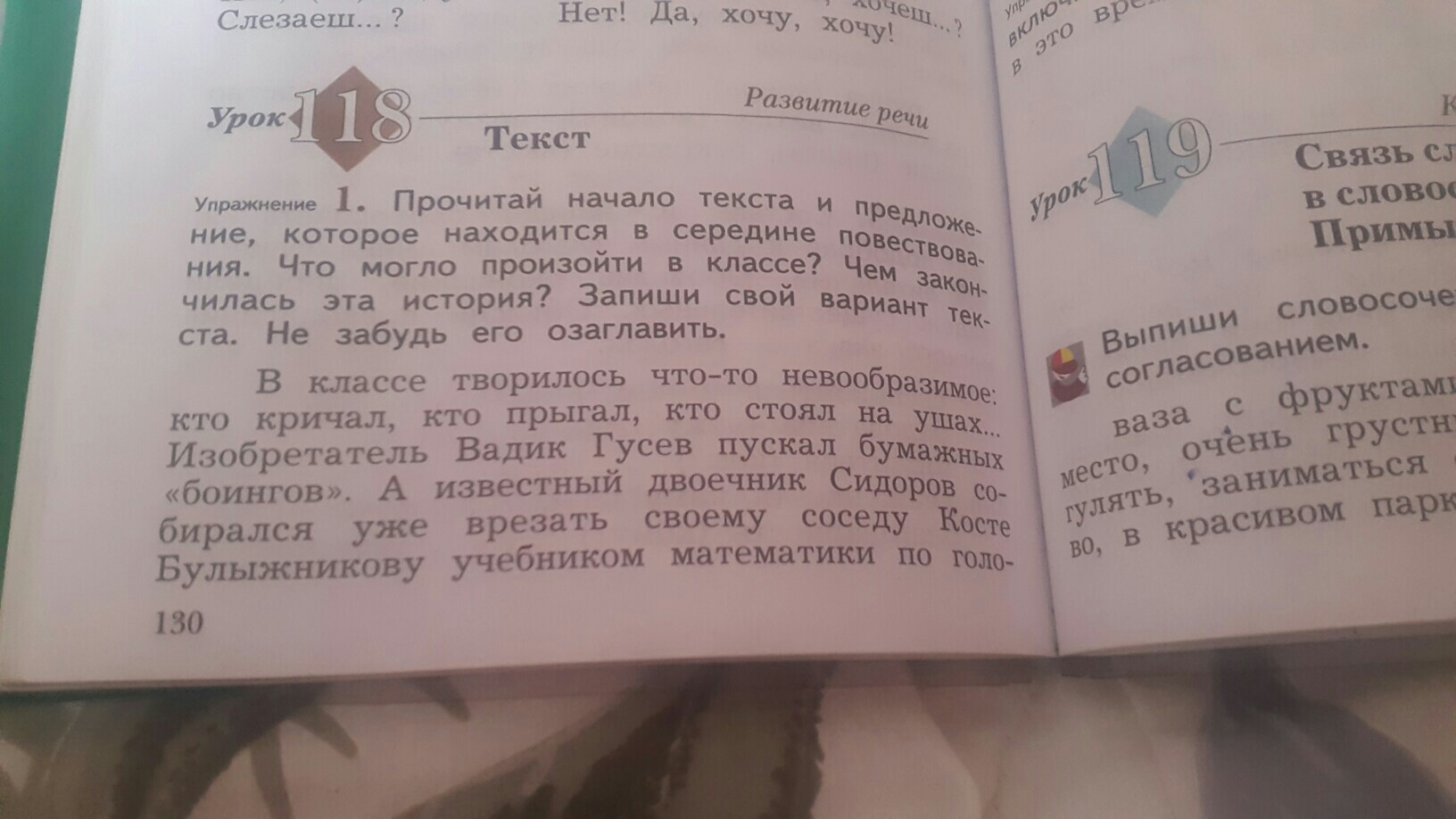прочитай начало текста и предложение которое находится в середине повествования что могло произойти в классе чем закончилась эта история запиши свой вариант текста не забудь его озаглавить