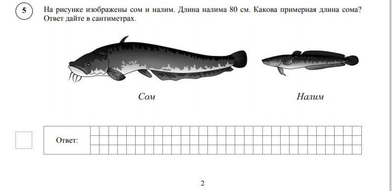 На рисунке изображены сом и налим. Длина налима 80 см. Какова примерная длина сома?