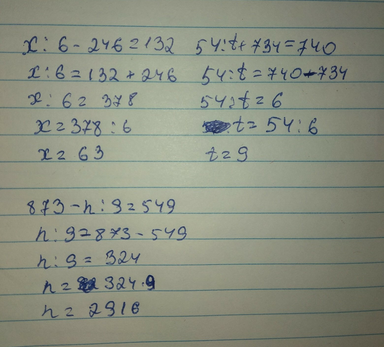 x:6-246=132 54:t+734=740 873-n:9=549