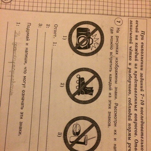 На рисунках изображены знаки.Рассмотри их и напиши,где можно каждый из этих знаков. Подумай и напиши, что могут означать эти знаки