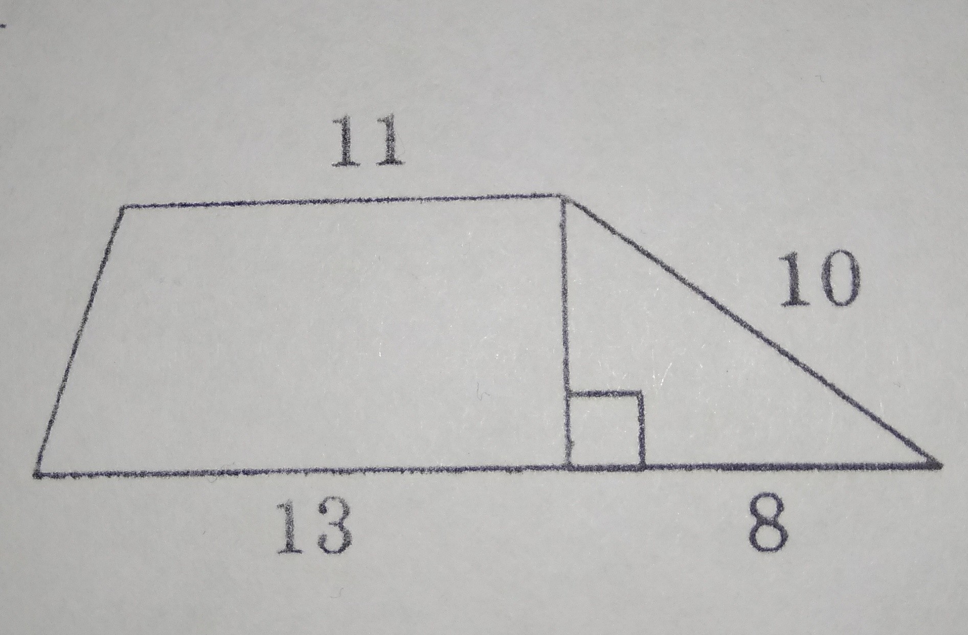Найдите площадь трапеции изображённой на рисунке. 11, 13, 8, 10