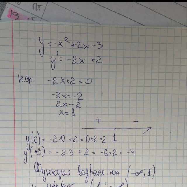 Функция возрастает от (-бесконечности до 1)