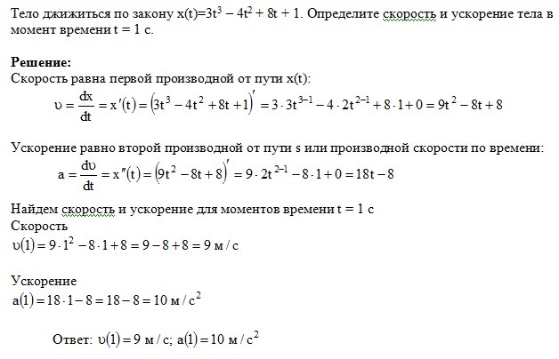 тело джижиться по закону x(t)=3t^3-4t^2+8t+1. определите скорость и ускорение тела в момент времени t=1