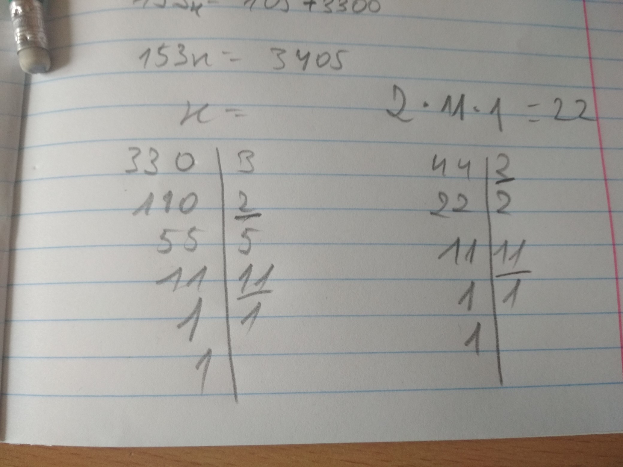 Тогда НОК (330,44)=2*2*3*5*11=660