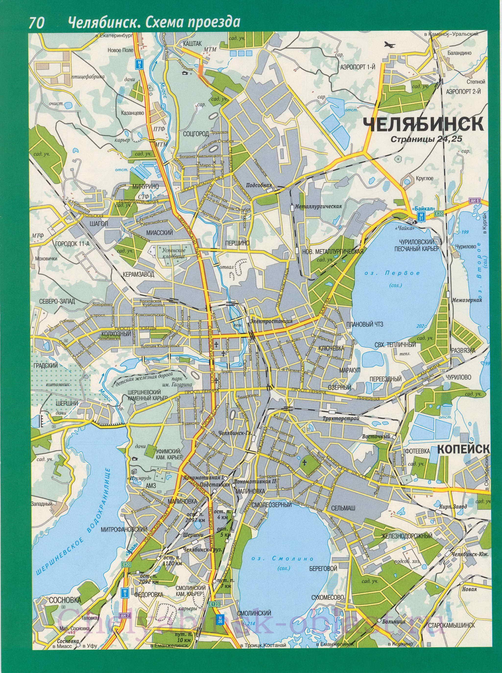 Если посмотреть на карту Челябинска, которая дана ниже в приложении, то можно увидеть, что город стоит на реке Миасс, есть такие озёра как Смолино, Первое и Второе, также есть Шершнёвское водохранилище.