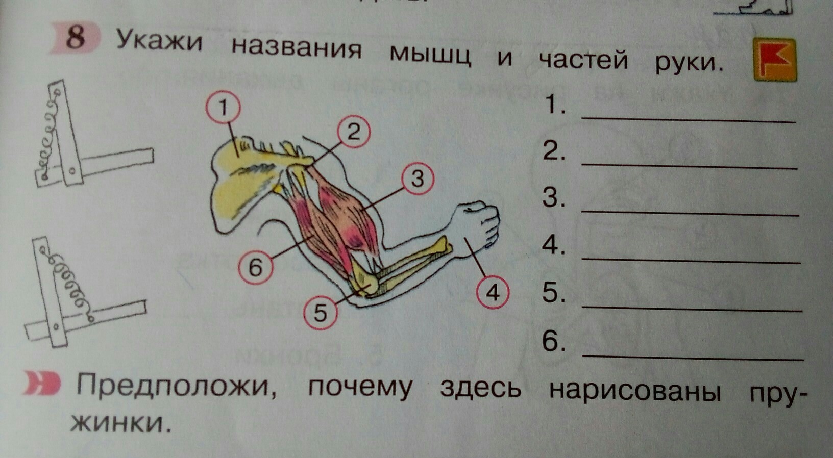 1,Лопатка 2.мне кажется дельтовидная мышца 3,латеральная головка 4,кисть 5,локтевой сустав 6,длинная головка