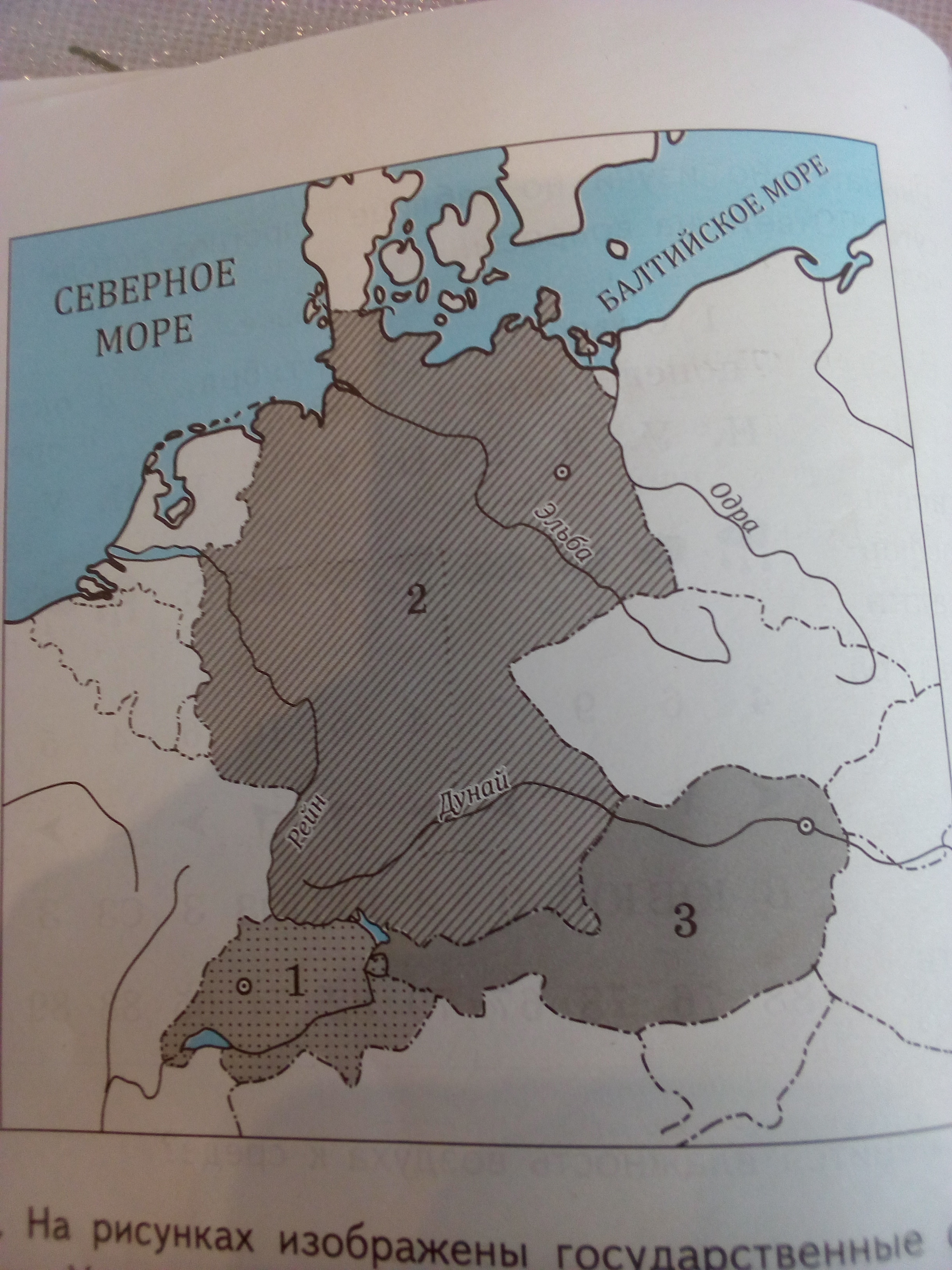 Внимательно рассмотри карту центра Европы. На ней цифрами отмечены 3 страны. Запиши название каждой страны!