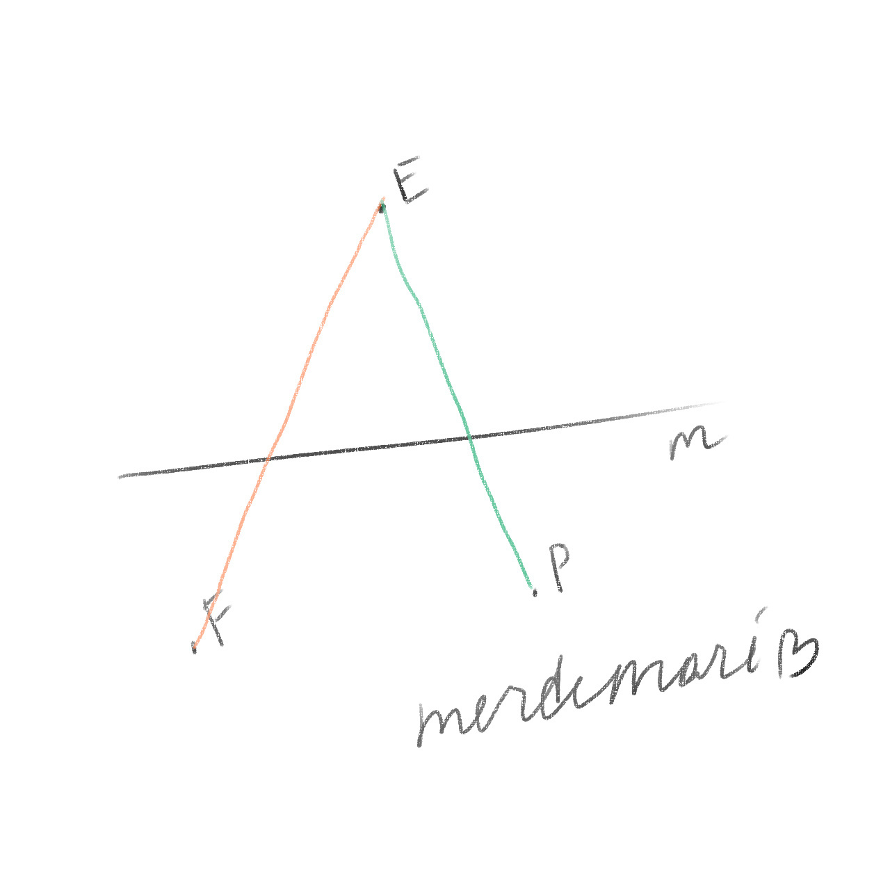 Начертите прямую m. Отметьте точки E F P, которые не принадлежат прямой m, так чтобы отрезки EF и EP пересекали ее.