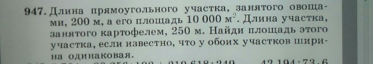 1) 10000:200=50(м)-ширина обеих участков