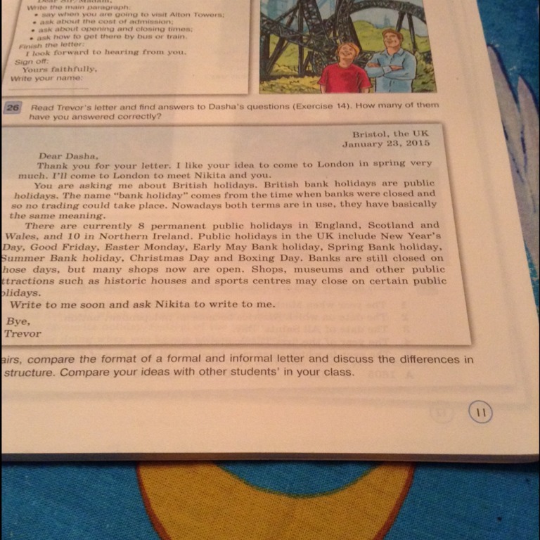 Dear Ben,How's it going? It was so nice of you to drop me a line. There are a lot of holidays in Russia: New Year, April Fool's day etc. But my favorite is Maslenitsa. It comes either at the end of February or at the beginning of March, it's moveable festival. It usually lasts from Monday till Sunday. This holiday means the end of winter and the spring coming. I like this festival because during this holiday people visit each other, children play snowballs, light bonfires, enjoy horse-sledging. But the main reason of my adoration is "blini", the old Russian dish. Lent follows Maslenitza, it is the strictest and long holiday, it lasts 7 weeks. During these weeks people avoid eating fat meals, meat and there are few entertainments. People must work hard, pray and clean their soul. I think you should visit Russia and visit this great festival. I hope I'll see you soon!With love,[Name]Подробнее - на Znanija.com - https://znanija.com/task/21990502#readmore