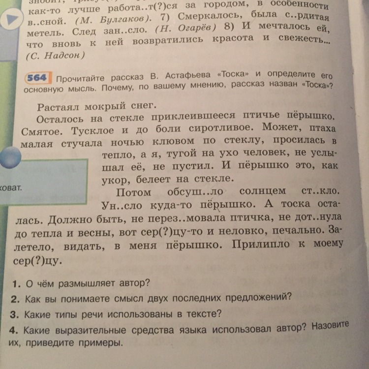 1. Автор размышляет о нелёгкой судьбе птицы, от которой осталось всего лишь одно маленькое перо.
