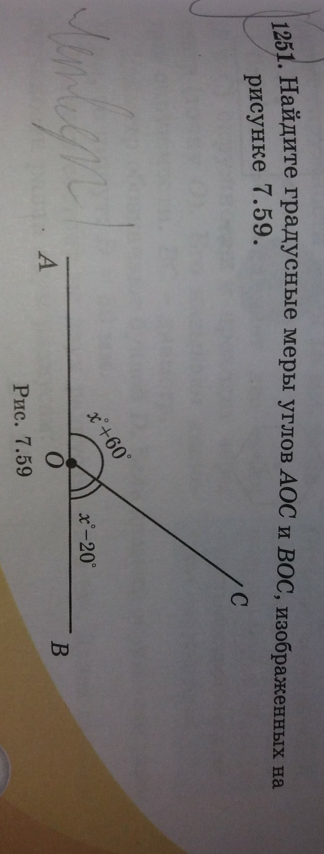 2х=140. х=70°. <AOC=70+60=130°, a <COB=70°-20°=50°