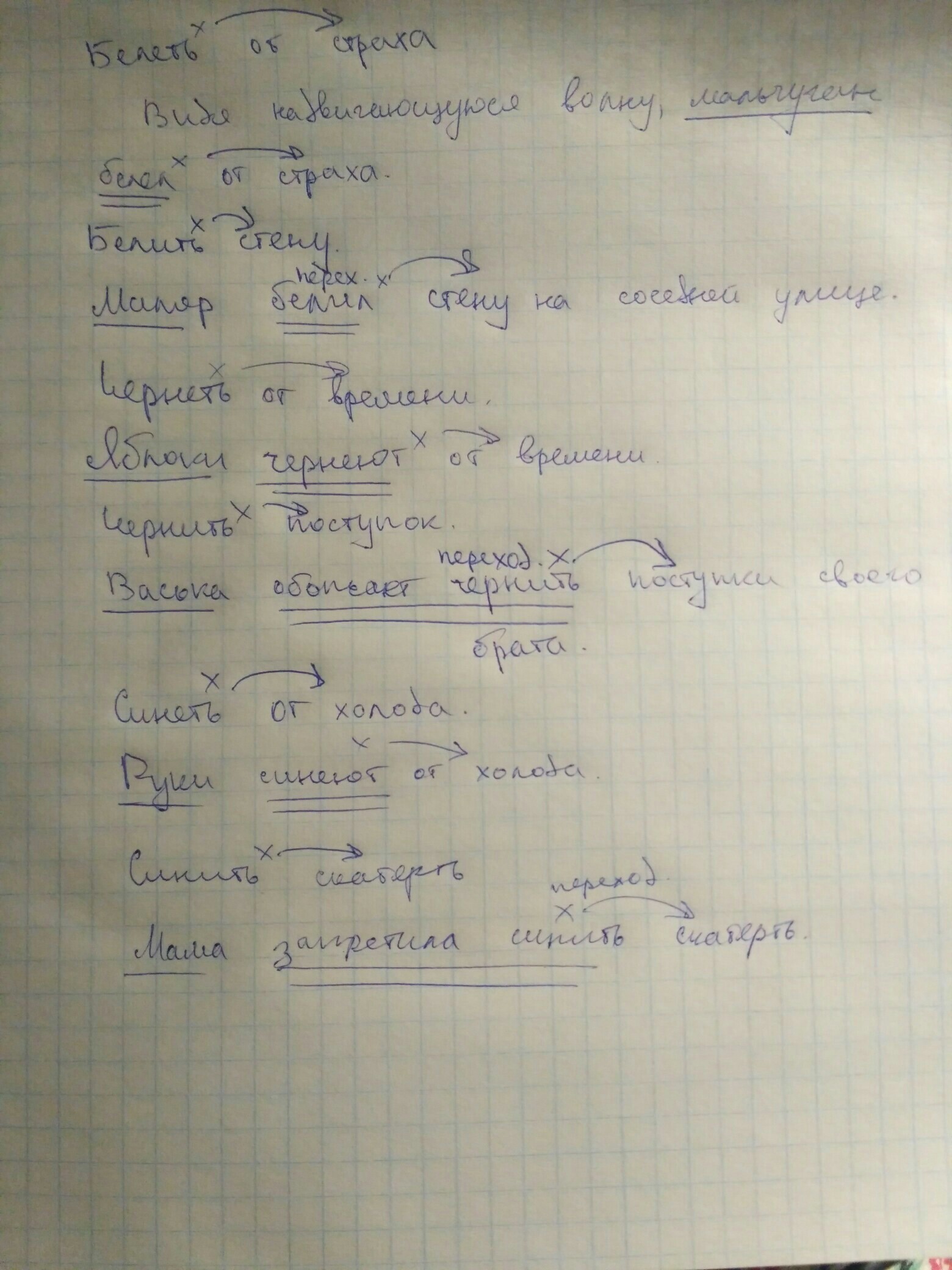 Помогите срочно!!! Составьте и запишите с глаголами белеть-белить,чернеть-чернить,синеть-синить словосочетаниях. В словосочетаниях отметьте главное слово в предложение подчеркните главные члены.Над переходными напишите пер. Помогите!!!!