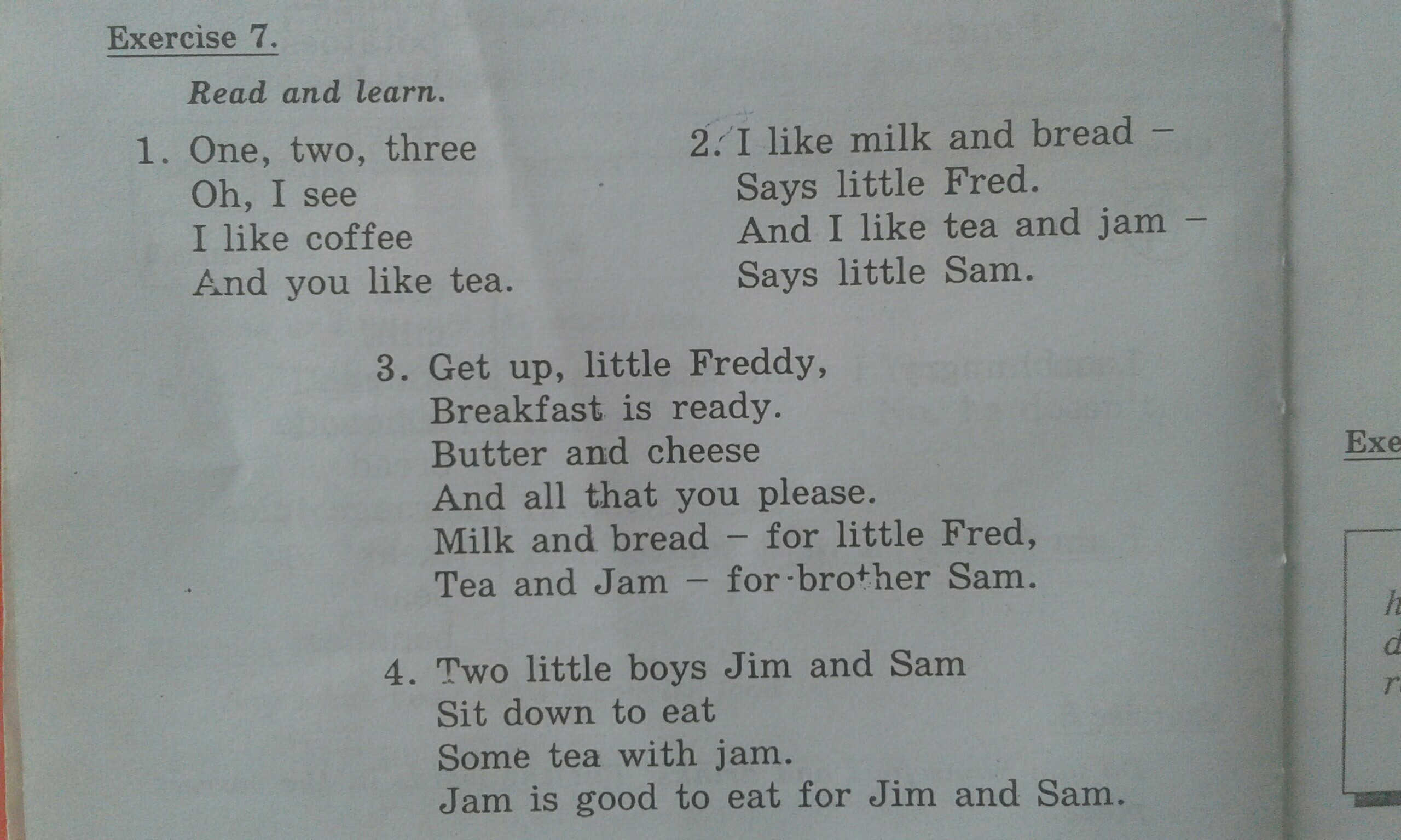 Я люблю молоко и хлеб