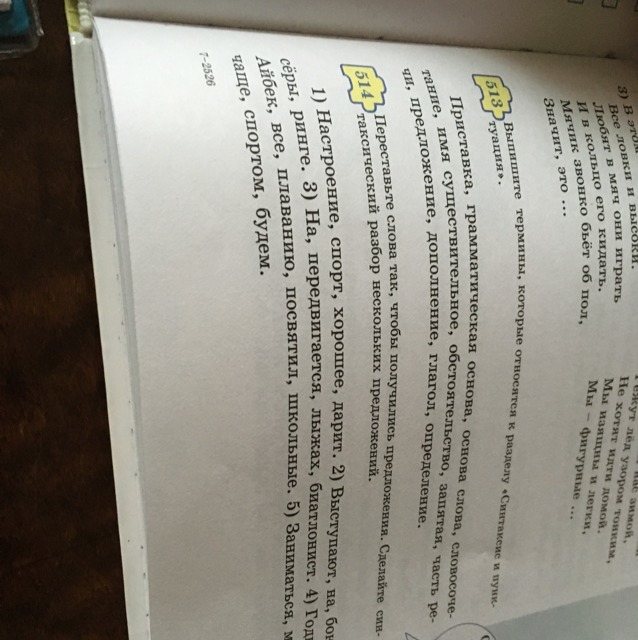 Спорт дарит хорошее настроение. Боксёры выступают на ринге. Биатлонист передвигается на лыжах.( Биотланист-подлежащее, выраженно существительным;передвигается-сказуемое; выраженно глаголом; на-предлог; лыжах-дополнение, существительное; повествовательное, невосклицательное, простое, двусоставное, распрастраненное) Все школьные годы Айбек посвятил плаванию. Мы будем заниматься спортом чаще. (Мы-подлежащее, выраженно местоимением; заниматься-сказуемое, выраженно глаголом; будем-обстоятельство, наречие; спортом-дополнение, сеществительное; чаще-обстоятельство, наречие; повествовательное, невосклицательное,распространенное, двусоставное, простое)