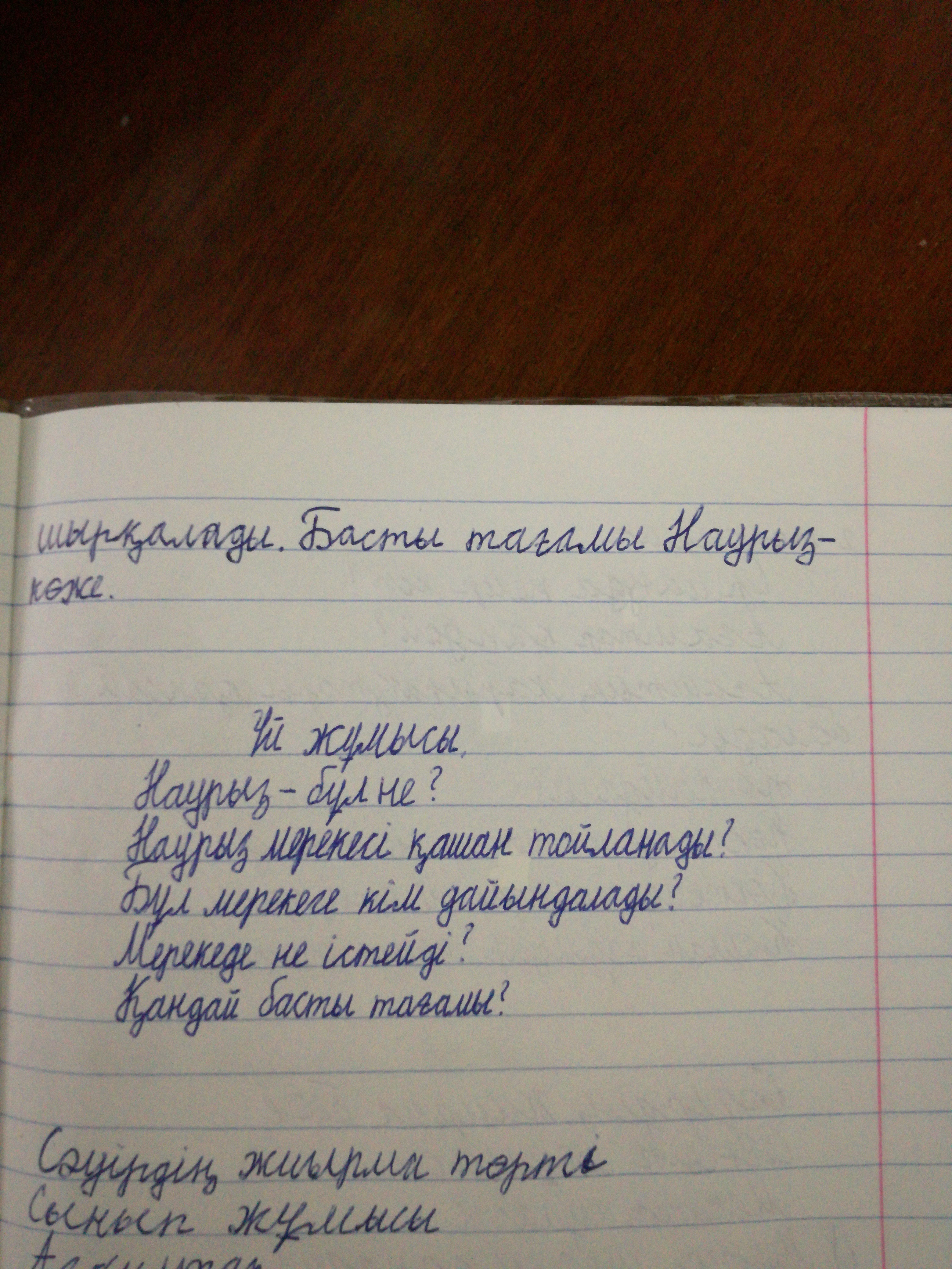 Мы получили пятерку. Удачи. Надеюсь разберетесь. Перевод таков: Наурыз это начало года. Наурыз празднуется весной. Люди готовятся к этому празднику. На празднике ставят юрты, поют песни, танцуют. Главный напиток наурызкоже