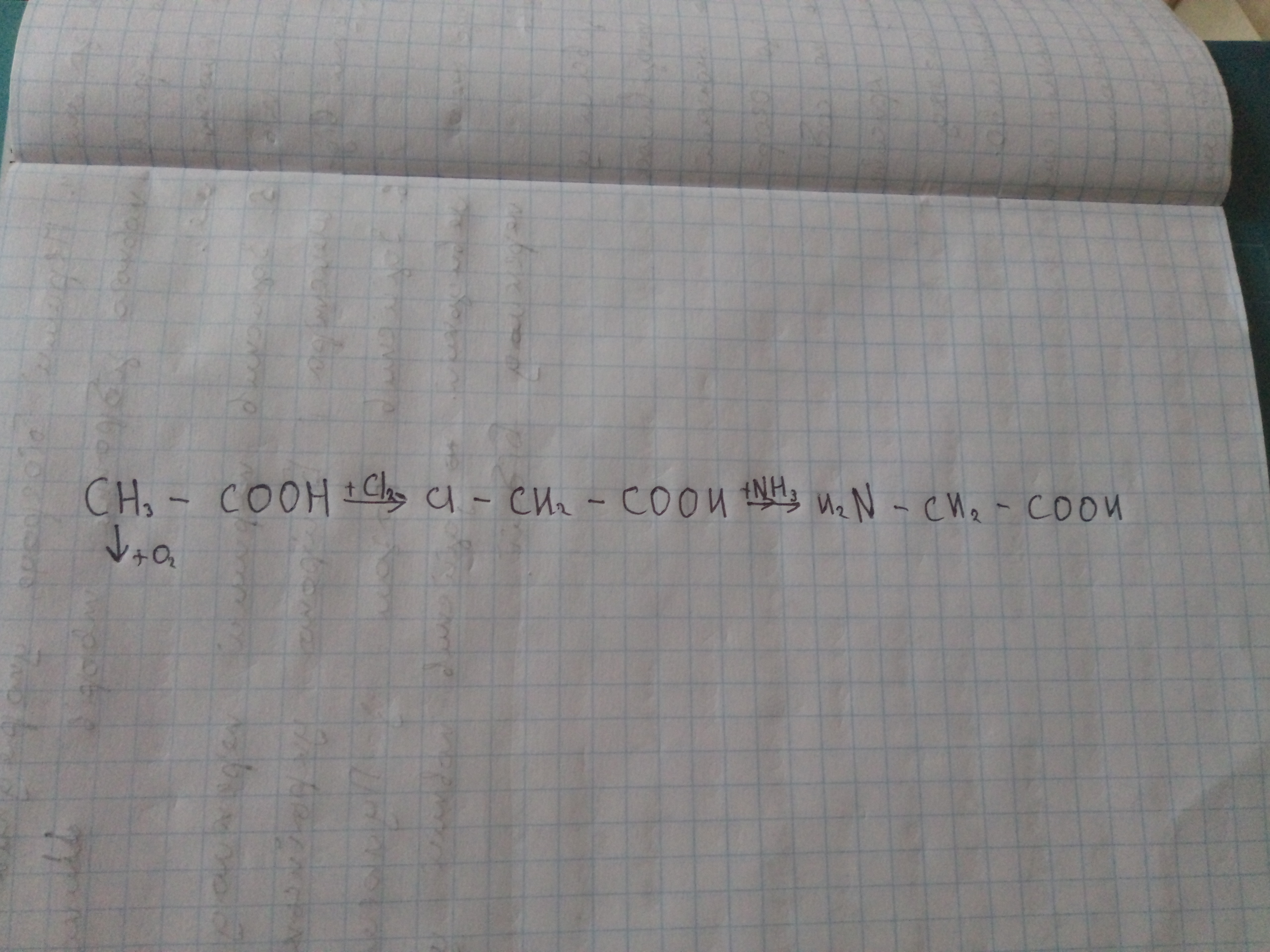 СH3COOH + Cl2 => CH2Cl-COOH + HCl